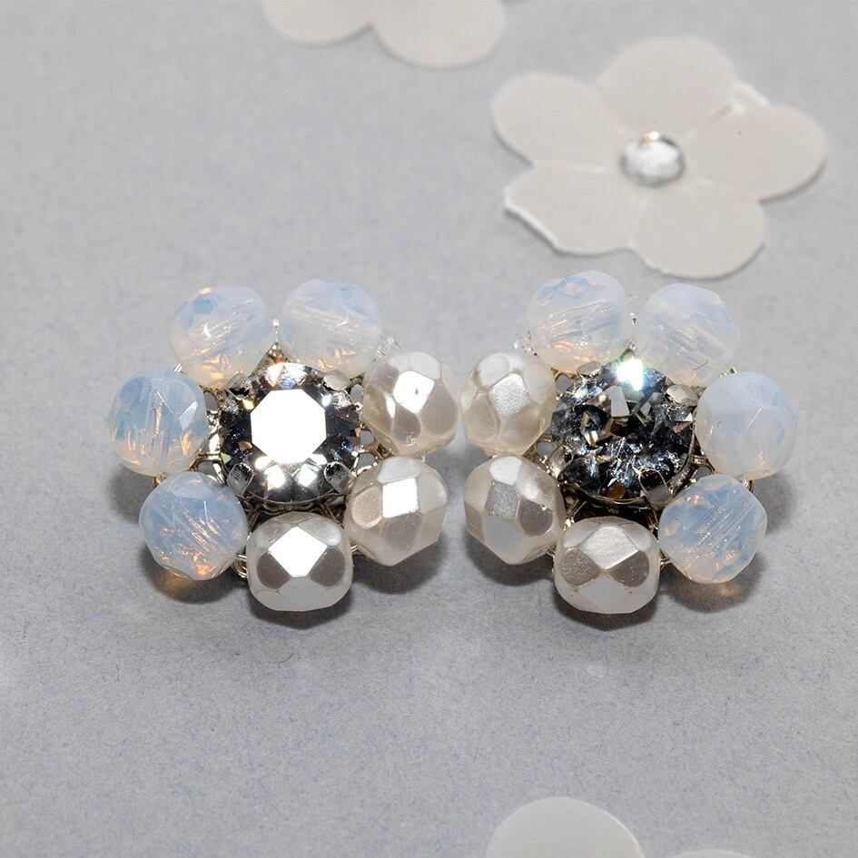 モザイクバールを使用したストーンフラワーシリーズのイヤリング。上品でお洋服にも合わせやすいイヤリングです。